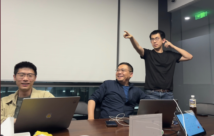 2024年4月16日凌晨4点,产品线和品牌部开会讨论。右一是李昕旸,右二是刘杰
