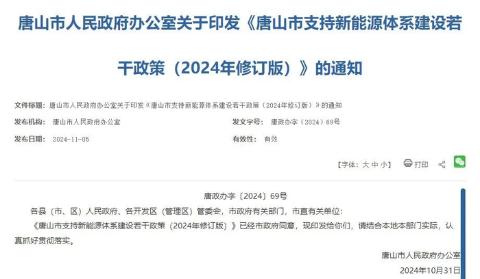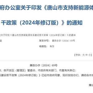 唐山发布支持新能源体系建设若干政策(2024年修订版)