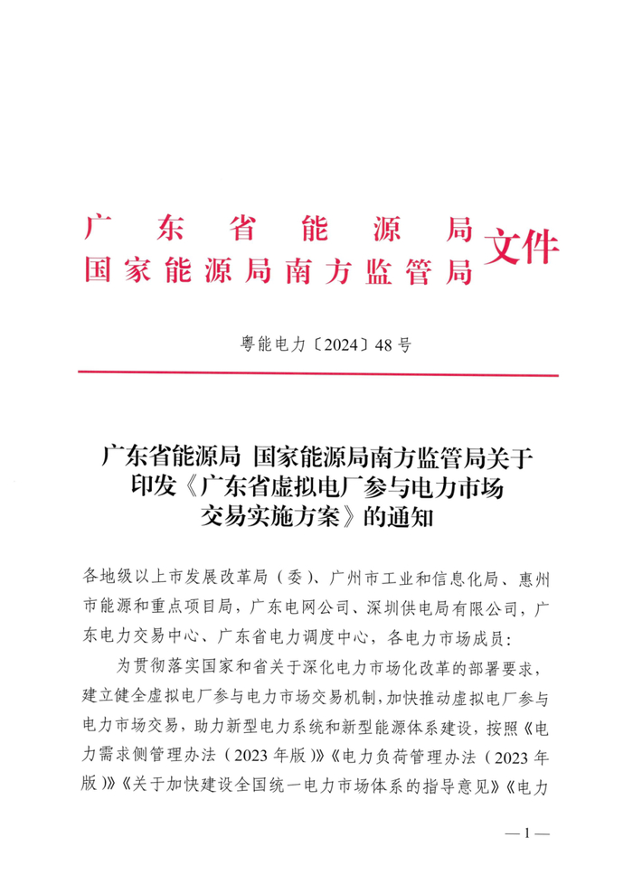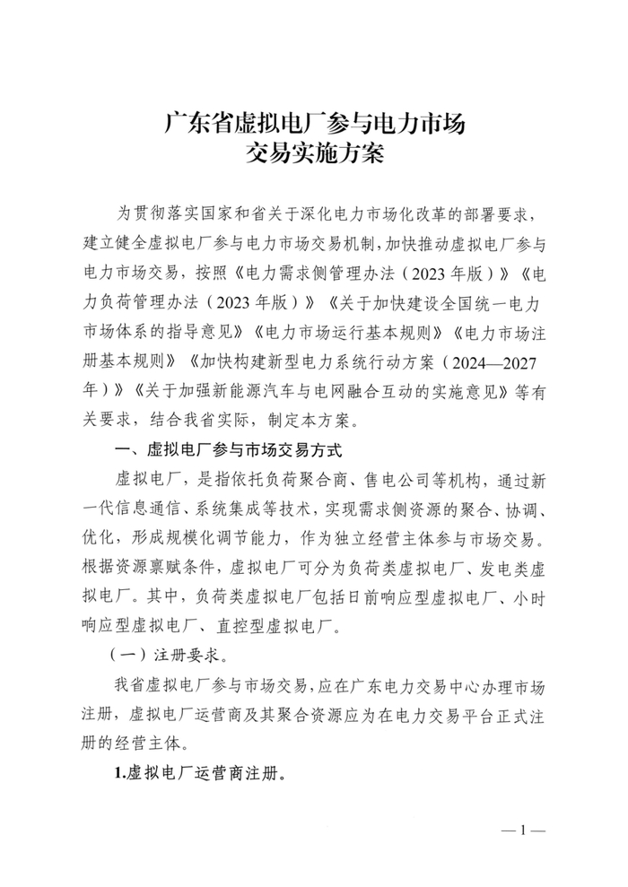 广东虚拟电厂参与电力市场交易实施细则