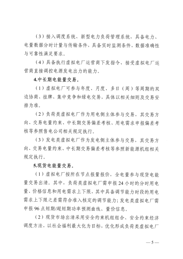 在全省启动日前邀约求响应期间,负荷类虚拟电厂需优先参与需求响应,在现货电量市场中按照报量不报价作为结算依据的方式参与交易;聚合源按照需求响应中标结果参与电力平衡调节。