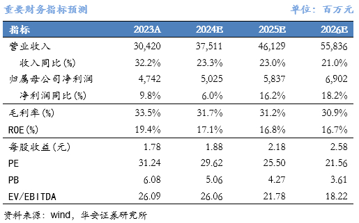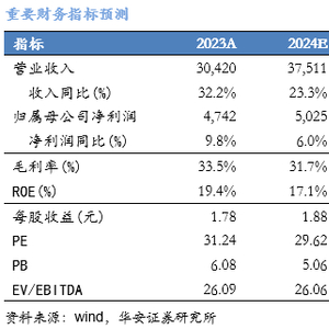 根据公司24年三季报,结合对公司市占及产能释放进度的判断,我们修改盈利预测2024-2026年营业收入分别为375.1/461.3/558.4亿元(前值375.9/462/559亿元),归母净利润分别为50.25/58.37/69.02亿元(前值53.6/62.3/73.6亿元),以当前总股本计算的摊薄EPS为1.88/2.18/2.58元(前值2/2.33/2.75元)。公司当前股价对2024-2026年预测EPS的PE倍数分别为29.6/25.5/21.6倍。考虑公司作为我国工控行业国产领先企业,有望受益于未来制造业自动化升级背景下工控行业景气度提升,同时公司新能源汽车电控业务持续放量,维持“买入”评级。