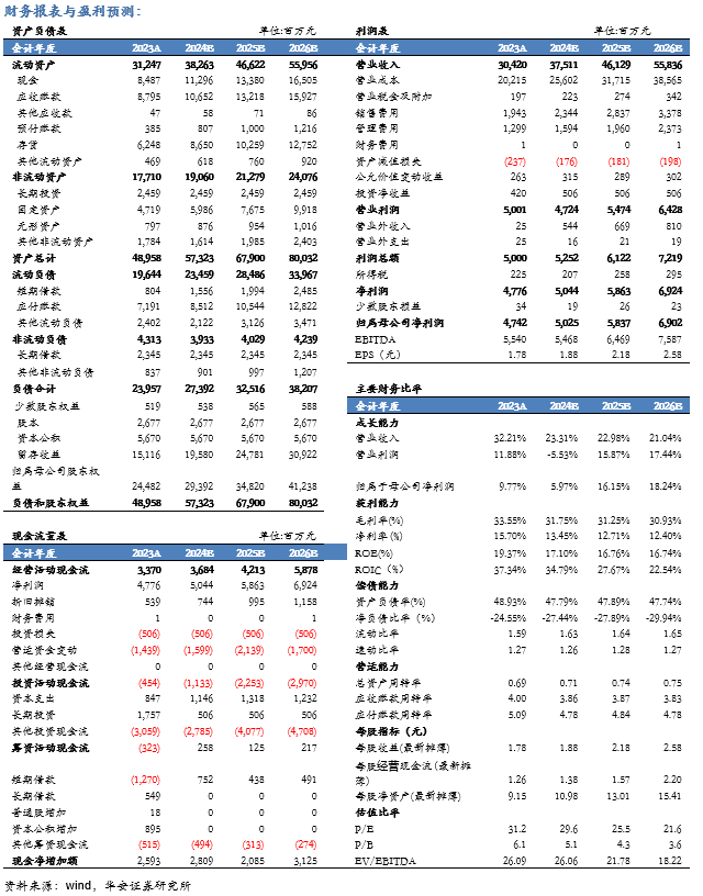 公司2024Q1~3实现营收253.97亿元,同比+26.22%,实现归母净利润33.54亿元,同比+1.04%,单季度来看,公司24Q3实现营收92.14亿元,同比+20.13%,持续维持较高增速增长;24Q3实现归母净利润达12.36亿元,同比-0.54%,降幅较24Q1~2收窄。