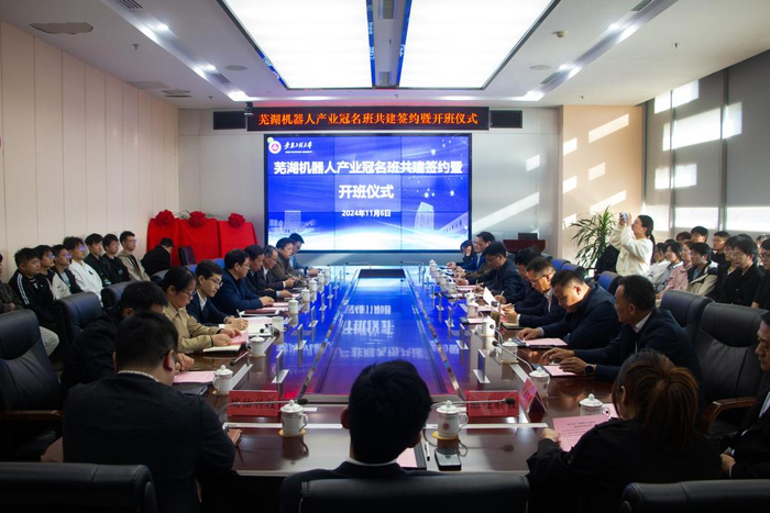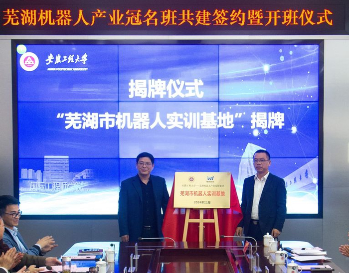 安徽工程大学与芜湖机器人产业发展集团联合开办“芜湖机器人产业冠名班”、共建机器人实训基地、共建虚拟教研室,将积极探索“以需求为牵引,以机器人产业为纽带,以产业链骨干企业为载体”的产教融合新路径,着力培育应用型、复合型、创新型人才。