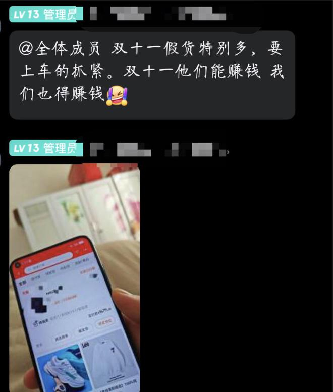 “双十一假货特别多,要上车的抓紧。双十一他们能赚钱,我们也得赚钱”;
