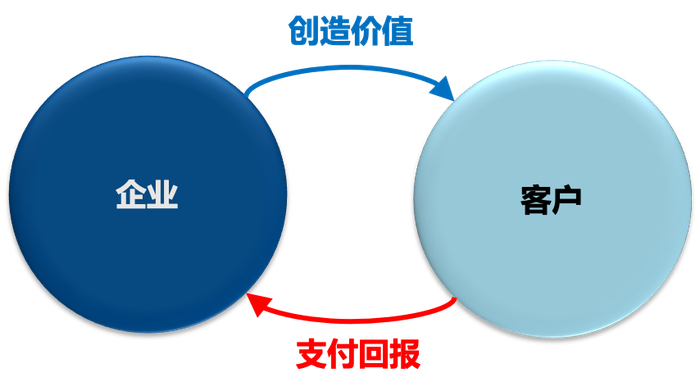 按照经济基本原理,企业和客户之间的关系是交易关系。企业为客户创造价值,客户获取价值后支付回报给企业,从而完成双方的交易。