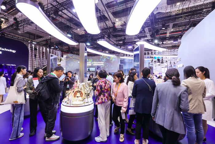 · 夜间皮肤修护板块:雅诗兰黛集团引领夜间修护科技40年。此次,集团利用最新的Apple Vision Pro技术,为进博会观众提供了一次沉浸式体验夜间修护科技的机会,深入揭秘雅诗兰黛集团提出的“肌肤昼夜节律”科学原理及“小棕瓶”蕴含的“律波肽”专利技术。现场观众可通过“隔空操作”亲身体验,并聆听专家访谈,了解雅诗兰黛夜胶原、大棕罐及海蓝之谜奇迹晚霜等新品背后的科学故事。