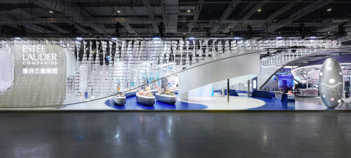 今年进博会的雅诗兰黛集团展馆内,流动线条营造视觉延伸感,为参观者提供体验产品、科技的精致空间,着力呈现高端美妆和科技盛宴。