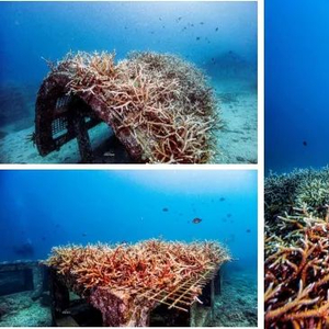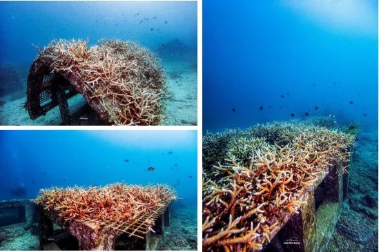 ▲人工礁体修复退化区域后建立的珊瑚苗圃