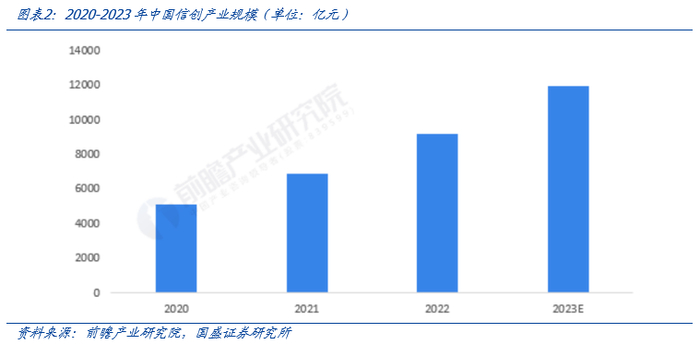 万亿级信创产业空间打开。根据前瞻产业研究院的预测,2023年中国信创产业规模在12000亿元左右。