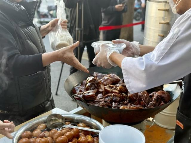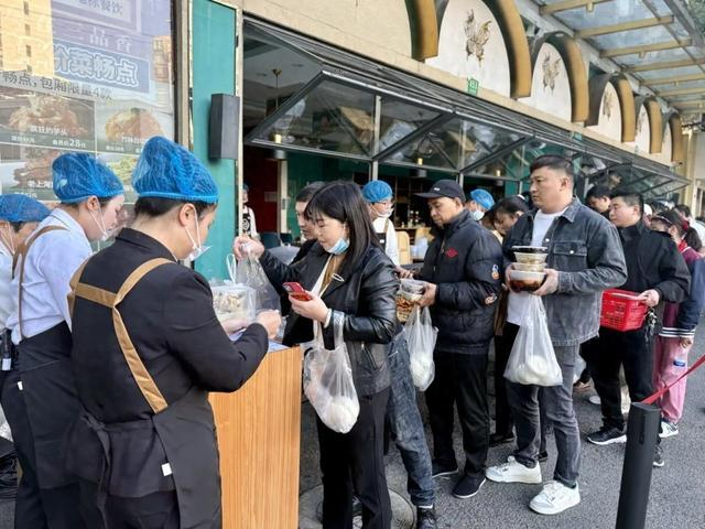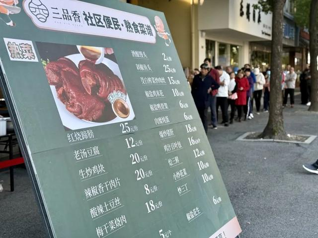 下午3时30分许,记者来到三品香饭店看到,门口已经排起了长龙。小炒香干、椒盐排条、鸡汁百叶包、酒酿馒头……热气腾腾的熟食摆满了摊位,种类丰富,香气扑鼻。一位工作人员熟练地将一份红烧蹄髈打包好,递给面前的顾客。“这里既实惠又方便,真是省了不少事。”张先生提着满手的菜盒,开心地说道。他告诉记者,自己和妻子都是朝九晚五的上班族,每天都要为一家三口的晚餐苦恼,“想让孩子放学回来就能吃到美味的饭菜,而且还要吃得健康。这下好了,我们可以在线上订好餐,下班路上顺便来取,就能轻松解决晚餐问题”。