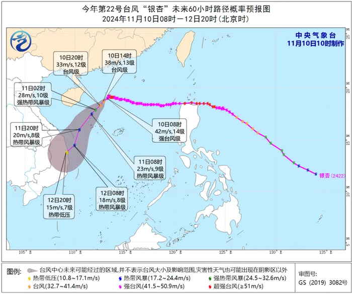 海南省气候中心10日介绍,9日20时-10日0时,今年第22号台风“银杏”在南海的中心附近最大风力已达16级,为超强台风,成为中华人民共和国成立以来11月影响海南省的最强台风。
