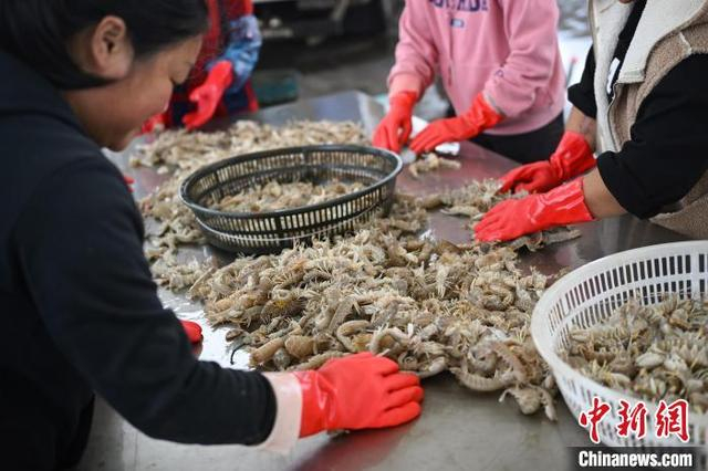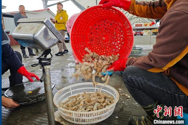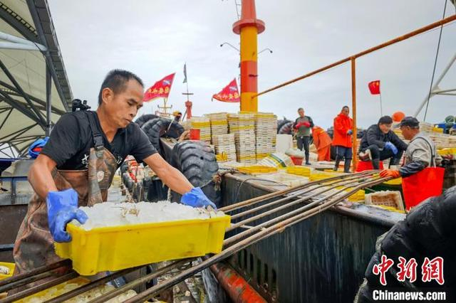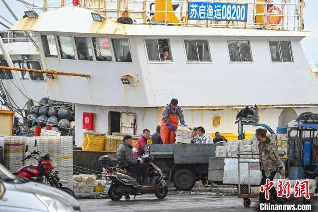 11月10日,江苏启东吕四渔港码头,渔民们卸货、分类处理各种新鲜海产品,这些海鲜不仅满足本地居民需求,也通过冷链物流销往全国各地。地处黄海、东海、长江三水交汇处的吕四渔港是六大国家级中心渔港之一,以盛产黄鱼、鲳鱼、带鱼、海蜇等远近闻名。中新社记者 泱波 摄