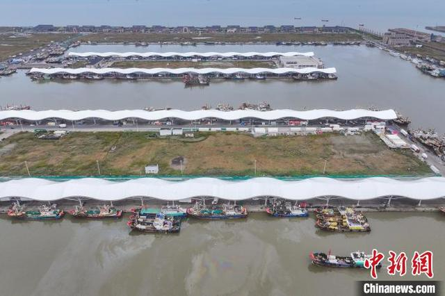 11月10日,江苏启东吕四渔港码头,满载新鲜海产品的渔船进港,这些海鲜不仅满足本地居民需求,也通过冷链物流销往全国各地。地处黄海、东海、长江三水交汇处的吕四渔港是六大国家级中心渔港之一,以盛产黄鱼、鲳鱼、带鱼、海蜇等远近闻名。(无人机照片)中新社记者 泱波 摄