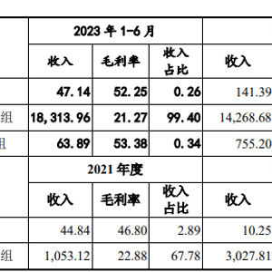 2021年至2023年及2024年上半年,该公司主营业务毛利率分别为28.12%、27.03%、30.75%和30.81%,同行上市公司平均毛利率分别是29.4%、28.23%、26.45%、25.96%。2023年以来,该公司对终端品牌商Ring、Blink指定的EMS厂商销售收入及收入占比大幅提升,且公司对终端品牌商的毛利率较高,进而使得当期光学镜头毛利率大幅提升。