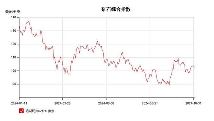 周度行情回顾:本周进口矿现货市场先扬后抑运行,价格波动较大,整体价格重心环比变化不大。周前期,本周是市场宏观面消息较密集,周初美国大选落地,或对出口有回落预期。但市场对国内政策端有较强预期,叠加成材端板材需求韧性尚可,另外周四凌晨美联储降息25基点,符合市场预期。黑色基本面矛盾仍不深。铁矿石基本面方面,近期供需基本面矛盾弱稳,未明显变化,整体价格重心上涨,股期两市同步上行,周四01合约最高触及801元/吨,掉期最高触及106.2美金,山东地区PB粉785元/吨,唐山地区796元/吨左右。周五,市场人大常委会召开,市场解读会议政策端远不及预期,情绪大幅回落,盘面最低触及770元/吨,掉期最低触及101美金,山东地区PB粉765/762元/吨左右成交。