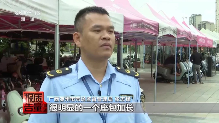 广西贺州市市场监督管理局 张志锋:现场看到电动自行车主要就是座包比出厂要求的标准长,很明显座包加长。