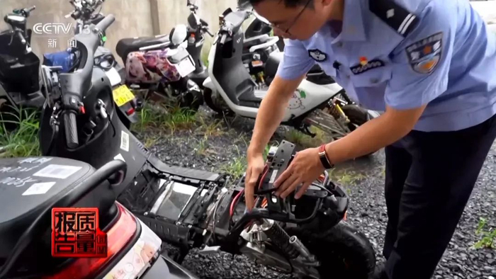 江西省新余市公安局食药环侦支队民警 彭骋:商家会对电动车更换下来的零部件进行二手置换,组装成一辆新的电动车。我们认为这个行为是涉嫌违反中华人民共和国刑法第140条,生产、销售假冒伪劣产品罪。