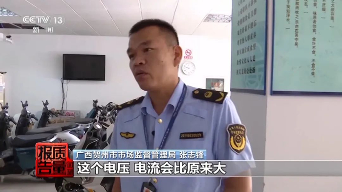 广西贺州市市场监督管理局 张志锋:加电池之后,电压电流会比原来大,原来的线路可能会承受不住,就会引起自燃,着火。