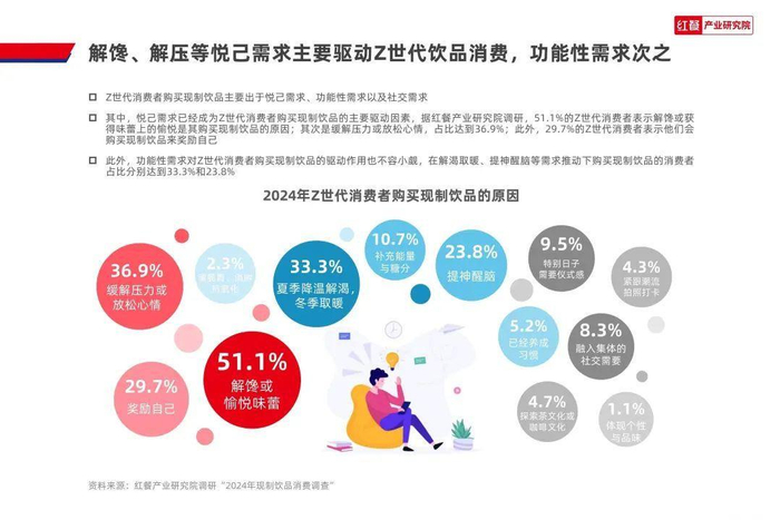 所以,即便消费者会更关注“无糖”、“不添加”等健康要素,但是也没有放弃口感带来的愉悦感。据红餐产业研究院调研指出,作为消费主力军的Z世代消费者,其51.1%都表示解馋或获得味蕾上的愉悦是其购买饮品的主要原因。