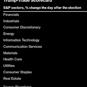 金融股也被视为处于强势地位,因为特朗普承诺对拜登领导下实施更严格银行规则的监管机构进行改革。正如富国银行(Wells Fargo & Co.)银行业分析师Mike Mayo所言,一个放松管制的新时代可能会提高华尔街的盈利能力。