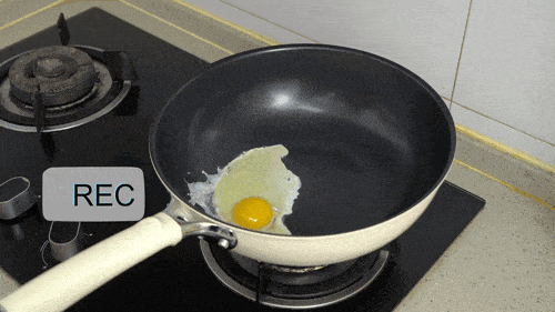 随后用煎蛋测试不粘锅的耐高温和不粘锅性。可以看到,即便是在少油的情况下,煎蛋也可以在锅内随意滑动没有与锅底粘连。加大火力,在鸡蛋翻面后同样没有粘锅的迹象,依然可在毫不费力在锅底滑动。这验证了九阳不粘锅有别于普通钛锅,即便长时间受高温也能保障持久的不粘锅性。