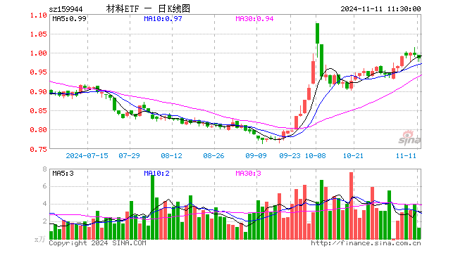 材料ETF(159944)跌0.81%,半日成交额125.00万元