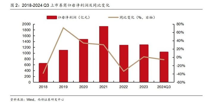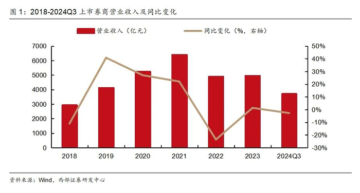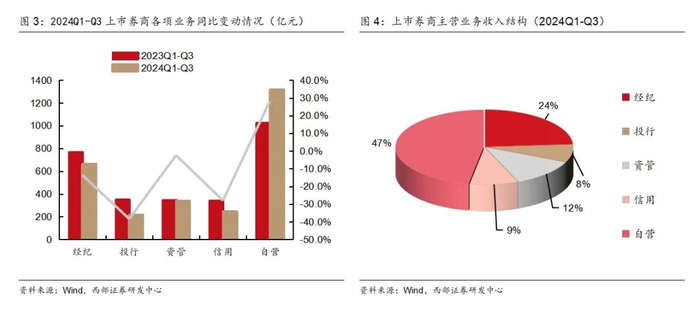 【西部非银】上市券商2024年三季报综述:Q3单季度归母净利润环比+14%,期待市场回暖业绩增量