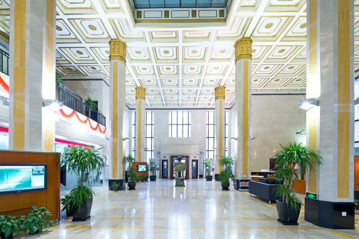 来到上海外滩的九江路36号,曾经的中华邮政储金汇业局,如今已转变为邮储银行上海分行黄浦区支行营业部。这座历史悠久的建筑以其新古典主义的风格、五层钢筋混凝土结构、门外的铜狮以及内部的花岗岩饰面,展现出简洁而典雅的风貌。步入其中,两层高的大厅、三层贯通的复合式巨柱、色彩斑斓的玻璃天棚,以及古铜色的保管箱库,无不透露出庄严而沉稳的气息。