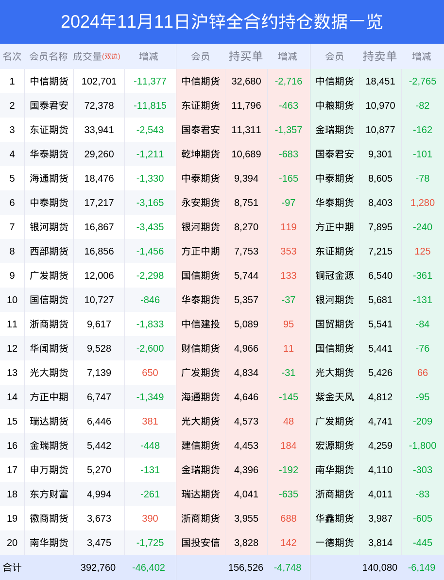 11日沪锌下跌0.85%,最新持仓变化