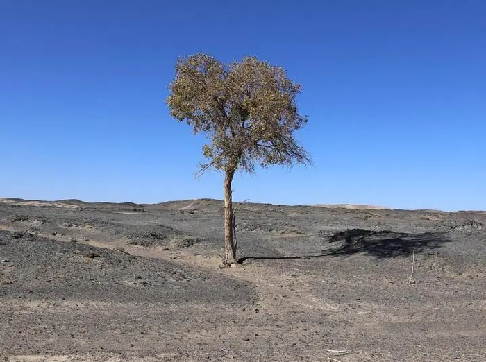 在距离边境线不足五公里的一处荒滩上,孤零零长着一棵算不上高大的胡杨。尼玛说,这是方圆五十公里内唯一的一棵胡杨。50多年前,年轻的尼玛第一次来巡边,它就长在这;50多年后,尼玛已经垂垂老矣,它还挺立在此。“还是老样子,似乎一点变化都没有。”
