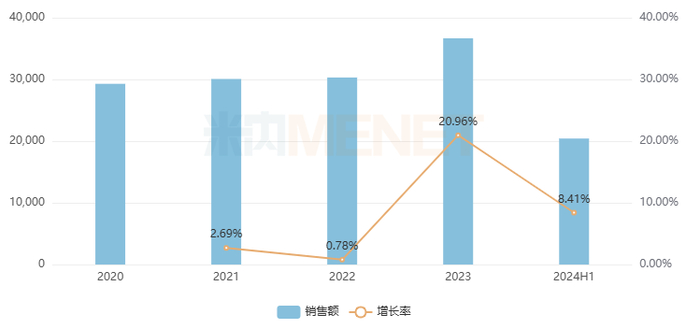 妇科再造丸是贵州德昌祥医药的独家产品,用于治疗月经不调、痛经、带下病等。在中国三大终端六大市场,该产品在2020-2022年迎来高速增长期,2023年的销售额涨至7900万元,2024上半年增长率为1.38%。该产品能否成为公司下一个亿元级别产品,我们拭目以待。