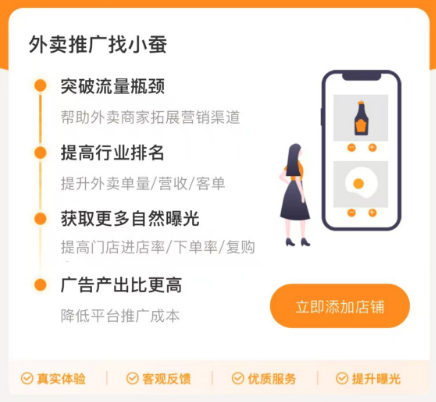 在 “ 好评 ” 和 “ 单量 ” 意味着声量、排名,甚至是 “ 与老店们竞争的资本 ” 这个大背景下,小蚕霸王餐商家版的主页上,写着 “ 突破流量瓶颈、提高行业排名、获取更多自然曝光、广告产出比更高 ” 等话术,这对商家无疑充满了诱惑力。