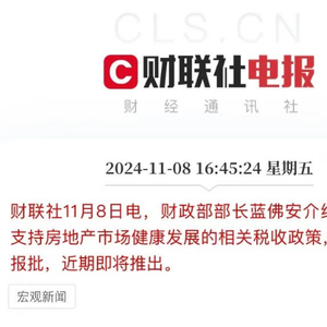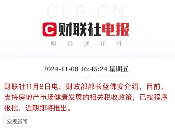 财政部部长表示:支持房地产市场健康发展的相关税收政策,已按程序报批,近期即将推出。