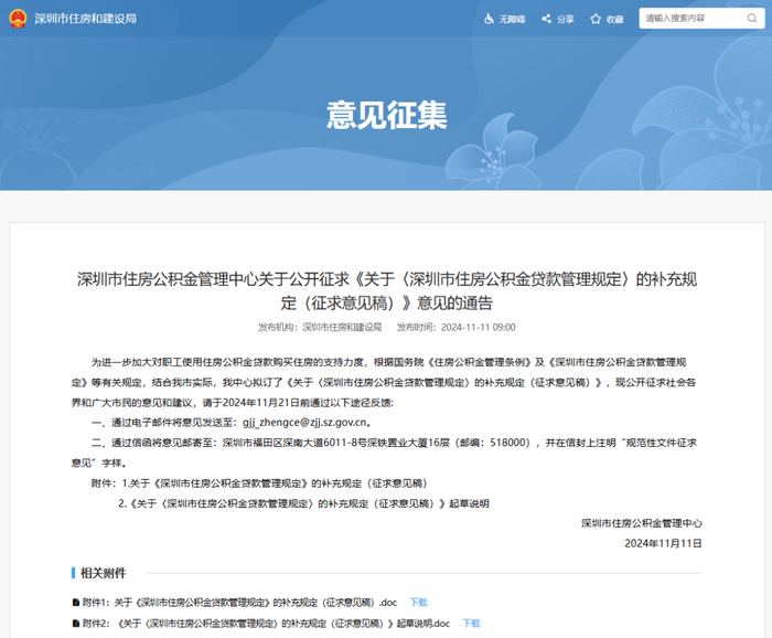 11月11日上午,深圳公积金中心发布了《关于〈深圳市住房公积金贷款管理规定〉的补充规定(征求意见稿)》。