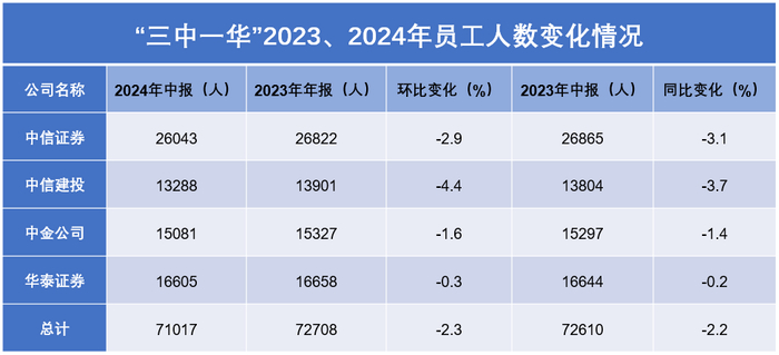 根据财报,四大券商的人员正持续减少。