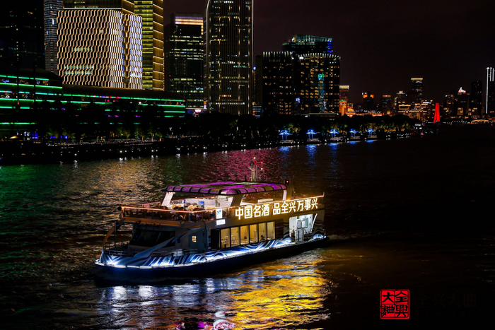 11月8日晚,高悬“品全兴 万事兴”品牌标识的大型游轮满载笑语,划开了黄浦江的夜色。东珠之畔的欢迎酒会,全兴酒业向前来参与“全速向兴”2024经销商大会的合作伙伴表示欢迎。