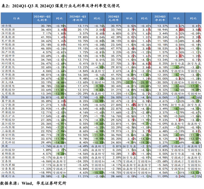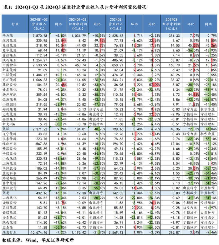 【华龙煤炭】煤炭行业2024年三季报综述:动力煤环比盈利改善,焦煤承压静待拐点