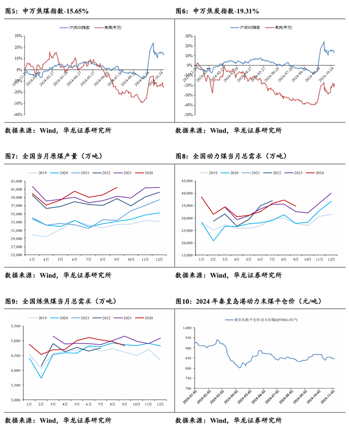 (3)需求改善不及预期。下游电力及钢铁需求改善不及预期,进而对动力煤及焦煤价格支撑形成不利影响。