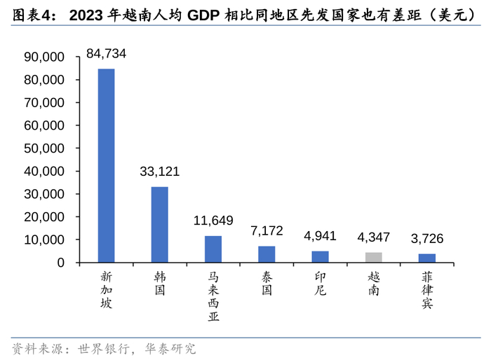越南长期保持较高经济增速,对比国际发展经验,未来仍有较大增长空间