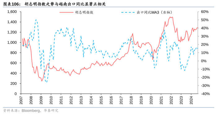 5.经济波动风险:越南经济高度依赖外部贸易,越南股市牛熊和出口息息相关,需关注全球经济环境变化对越南的影响。越南是一个出口导向型经济体,高度依赖对中国、美国等国家的进出口,国内本土消费市场不足以支撑其生产产品的“内循环”,因此在全球经济下行周期可能面临更大的压力。