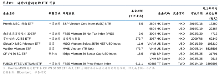 2. 规模最大的是FUBON FTSE VIETNAM ETF,于中国台湾地区上市,最新规模超6亿美元。