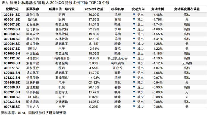 基于上市公司公布的前十大股东和前十大流通股东数据(以下简称“前十大名单”),可以对部分私募基金2024Q3期间的股票持仓变动进行估算。