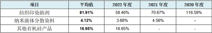 从上表可见,发行人产能平均利用率分别为81.91%、4.12%、16.95%,尤其是发行人主要产品纺织印染助剂的产能利用率,从2020年度的116.59%直线下降为次年的70.67%,再下降到2022年度58.46%,产能利用率仅为一半左右。