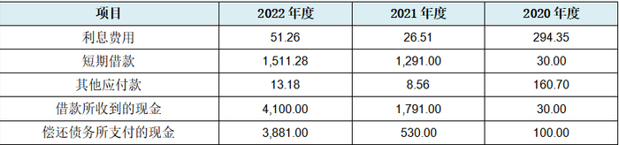 招股书中记载,发行人财务费用项下利息费用分别为294.35万元、26.51万元、51.26万元,发行人解释2020年度的利息费用主要部分系向关联方科峰投资借款产生的利息。但发行人此相关借款相关科目发生额与余额情况,如下表所示: