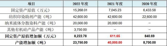 从上表可见,发行人固定资产原值增加分别为:840.69万元、611.65万元、8,222.78万元,但产能增加分别为8,700.00吨、40,000.00吨、23,750.00吨。明显不可思议的是,2021年度发行人的固定资产原值增加611.65万元,而产能却增加了40,000吨。
