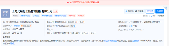 然而让人始料不及的是,可能也令发行人未曾预料,天眼查平台显示,上海允继已经注销。天眼查平台显示该客户的情况,如下图所示: