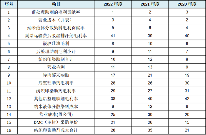 从上表可见,发行人从盈利额到毛利(率)再到成本类及毛利贡献率数据均表现出规律性变化。我们结合上文营业收入的直间接数据的规律性变化,也即发行人从收入到成本再到毛利(率)呈现完整的业务链数据规律性变化。上表中可能需要我们注意的是,纺织印染助剂从成本到毛利再到毛利率能够形成比较严格的产品分类逻辑性数据的规律性变化。