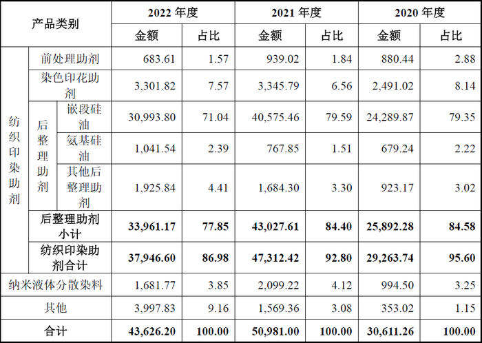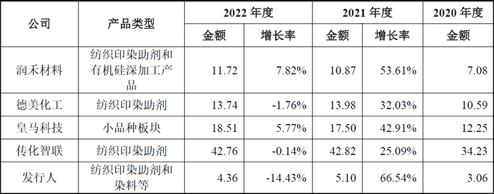 从上表可见,发行人主要收入来源为纺织印染助剂,其主营业务收入额分别为:30,611.26万元、50,981.00万元和43,626.20万元。与一般IPO企业营业收入持续增长不同是,发行人营业收入经历了先增后降的不利变化。