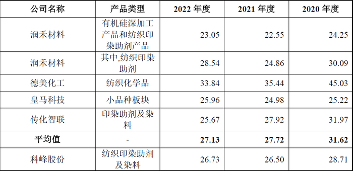 从上表可见,发行人毛利率分别为28.71%、26.50%、26.73%,均低于行业平均值,但表现出差异减少趋势。低于行业平均值可能是发行人表现对自身盈利能力不太自信的表现,但发行人的毛利率值又高于上表中与发行人一样专注发展嵌段硅油产品且最具可比性的可比公司润禾材料,发行人又表现出一定的自信。发行人自信或不自信矛盾之处,均可能与发行人的真实盈利能力有关。