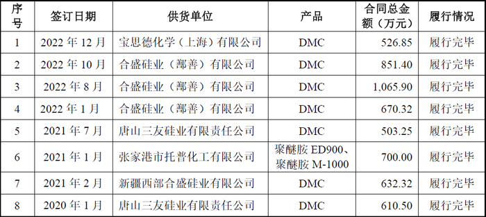 相反发行人采购所涉的重大合同,和销售合同表现却截然相反,发行人披露的重大采购合同情况,如下图所示: